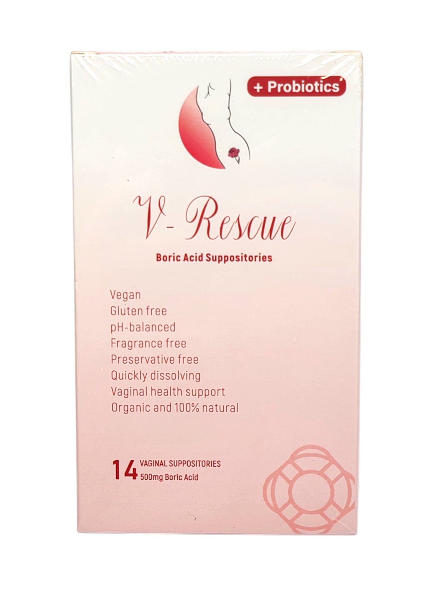 Benefits: A natural homeopathic suppository that can be used for those with constant thrush infections and those struggling with BV (bacterial vaginosis). V-Rescue is odorless and made with safe and all-natural ingredients. It is made with boric acid, a fast-acting ingredient along with a variety of other natural ingredients that act synergistically to maintain a healthy vaginal environment.